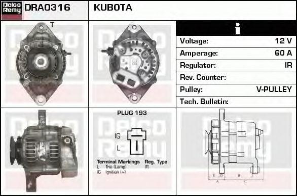 DRA0316 DELCO REMY Генератор aln4251ux