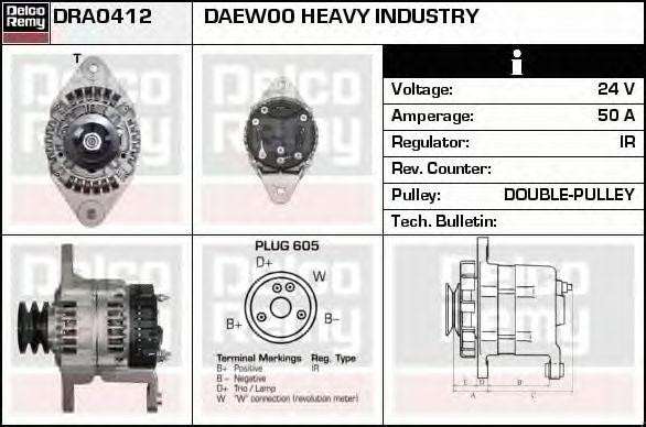 DRA0412 DELCO REMY Генератор cо шкивом 2 ручья ali5714lk