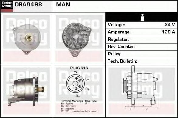 DRA0498 DELCO REMY Генератор alb1224ux