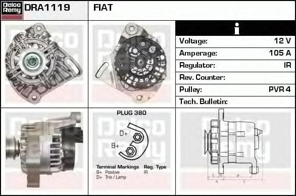 DRA1119 DELCO REMY Генератор alb0132lp