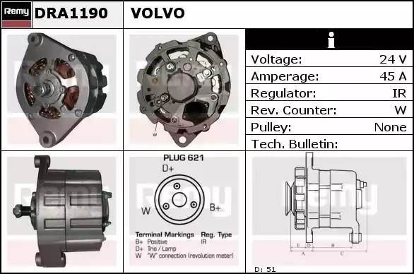 DRA1190 DELCO REMY Генератор alb0132lp