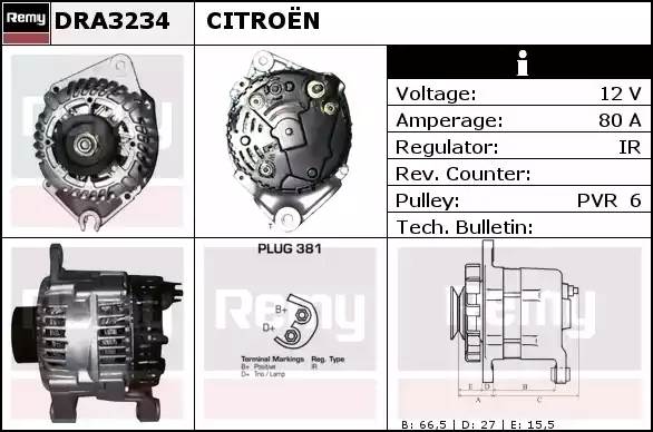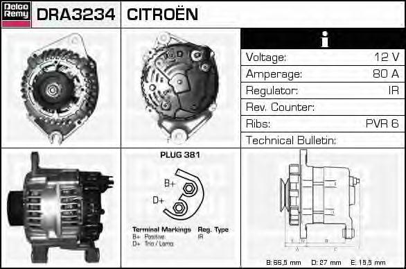 DRA3234 DELCO REMY Генератор alv0638ux