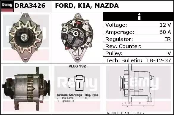 DRA3426 DELCO REMY Генератор alh0180kl