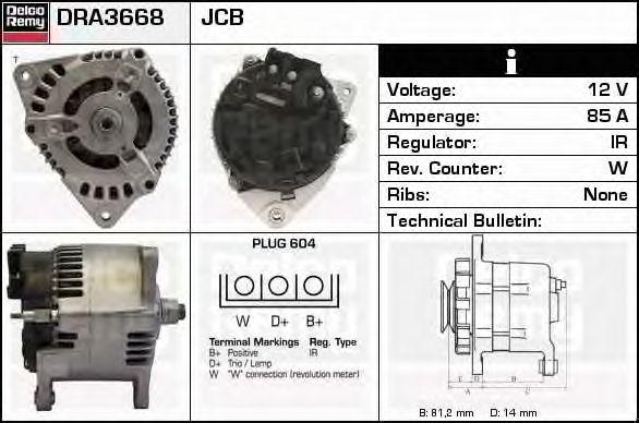 DRA3668 DELCO REMY Генератор 14v, 85 ампер, ima104655