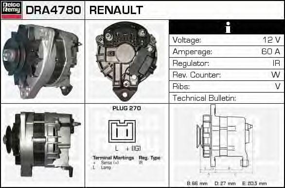 DRA4780 DELCO REMY Генератор alv0378ux