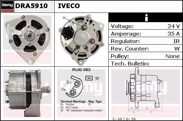 DRA5910 DELCO REMY Генератор 28v, 35 ампер, ima103404