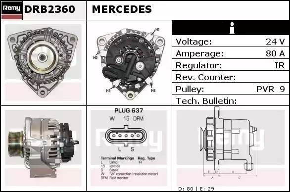 DRB2360X DELCO REMY Генератор 28v, 80 ампер, ima206019