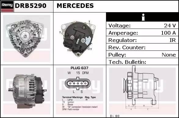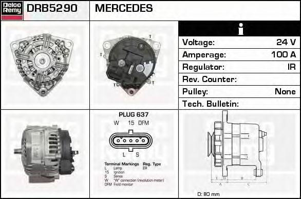 DRB5290 DELCO REMY Генератор 110amp alb6739ux