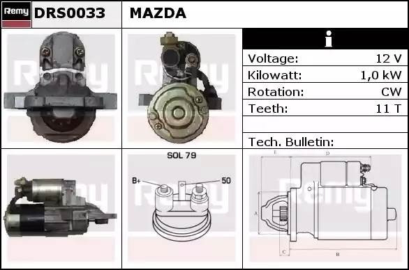 DRS0033 DELCO REMY Стартер 12v, 1,0kw, 11-зуб, ims107909