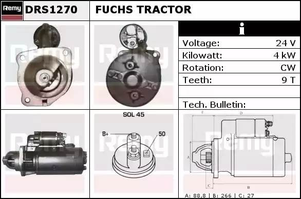 DRS1270 DELCO REMY Стартер 24v, 4.0kw, 9-зуб, ims101770