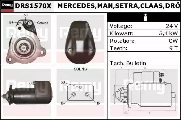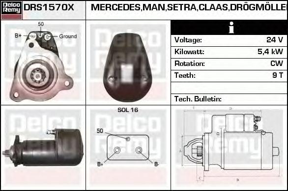 DRS1570X DELCO REMY Стартер 24V 5,4kwt MAN/Renault (19024010) 9T