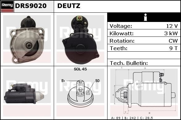 DRS9020 DELCO REMY Стартер 12v, 4.0kw, 9-зуб, ims101769
