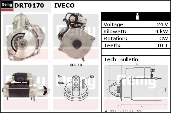 DRT0170 DELCO REMY Стартер 24v, 6.0kw, 10-зуб, ims201005