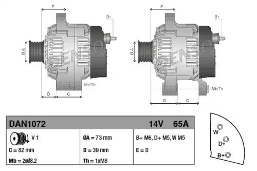 DAN1072 DENSO Генератор 14v, 85 ампер, ima104655
