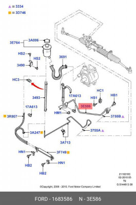 1683586 FORD Напорный шланг от насоса к рейке hph0290