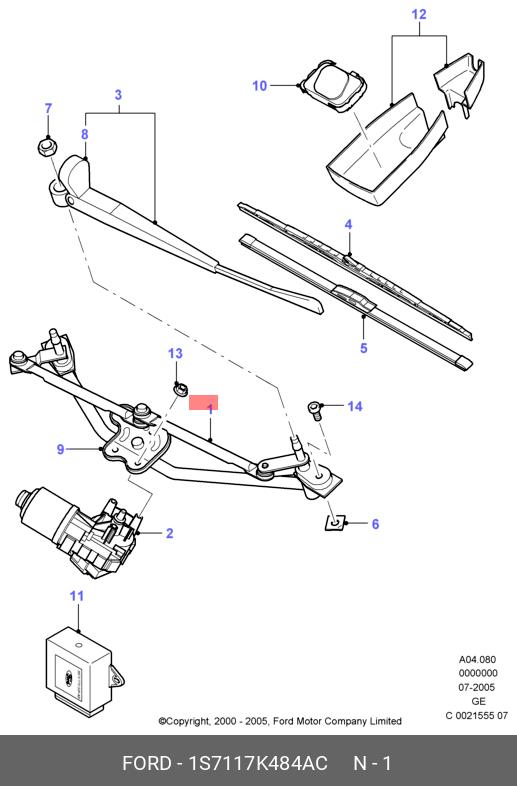 1S71-17K484-AC FORD Трапеция стеклоочистителя dkf1109ne