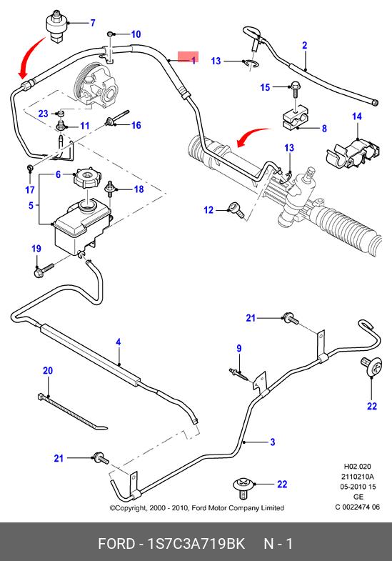 1S7C-3A719-BK FORD Напорный шланг от насоса к рейке hph0054