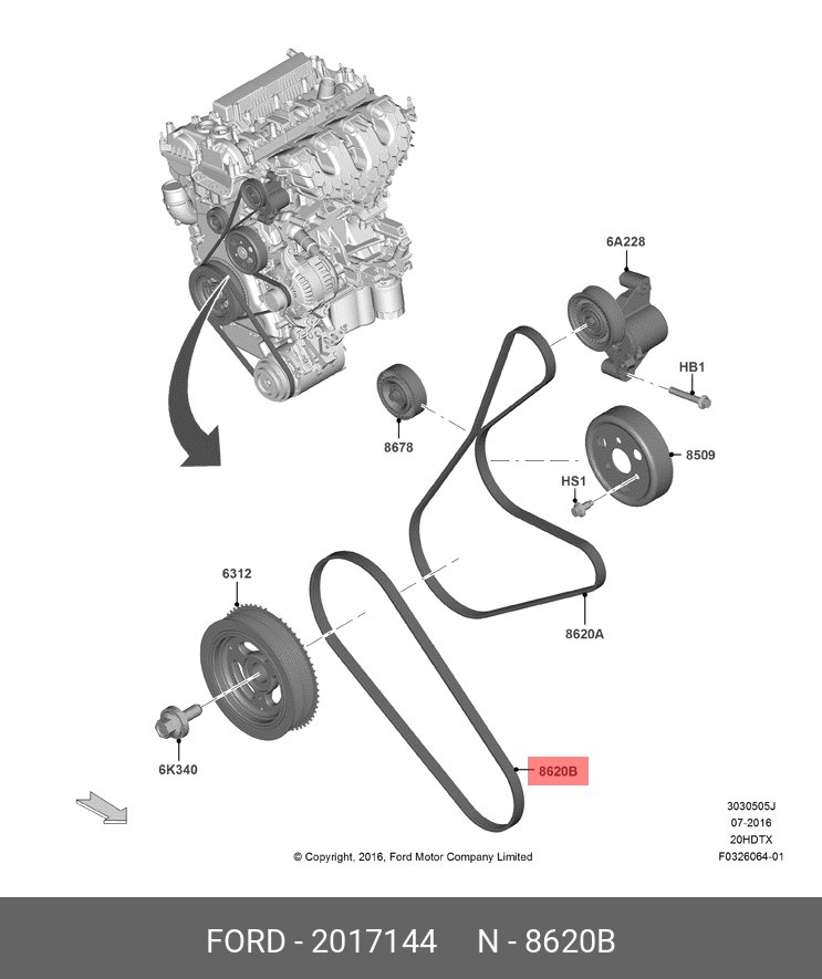 2 017 144 FORD Ремень ручейковый rrb1020pg