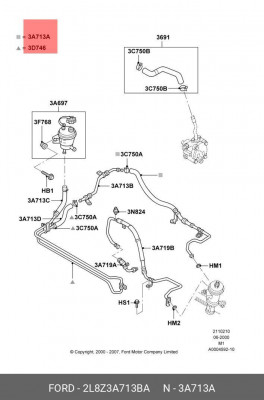 2L8Z-3A713-BA FORD Обратный шланг от рейки к бачку hrh0062