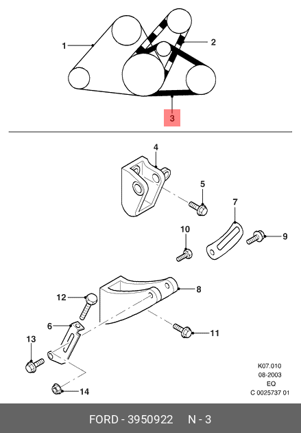 3 950 922 FORD Ремень клиновой rrb1430pg