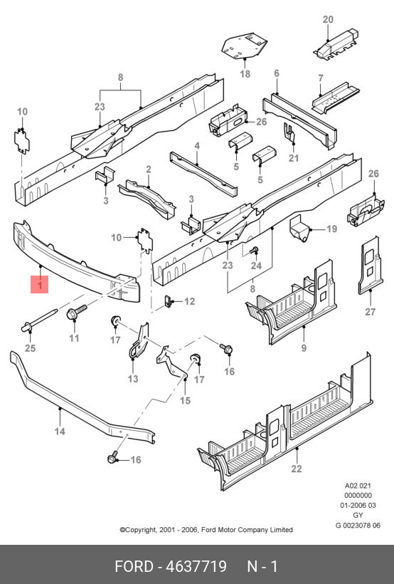4 637 719 FORD Усилитель переднего бампера
