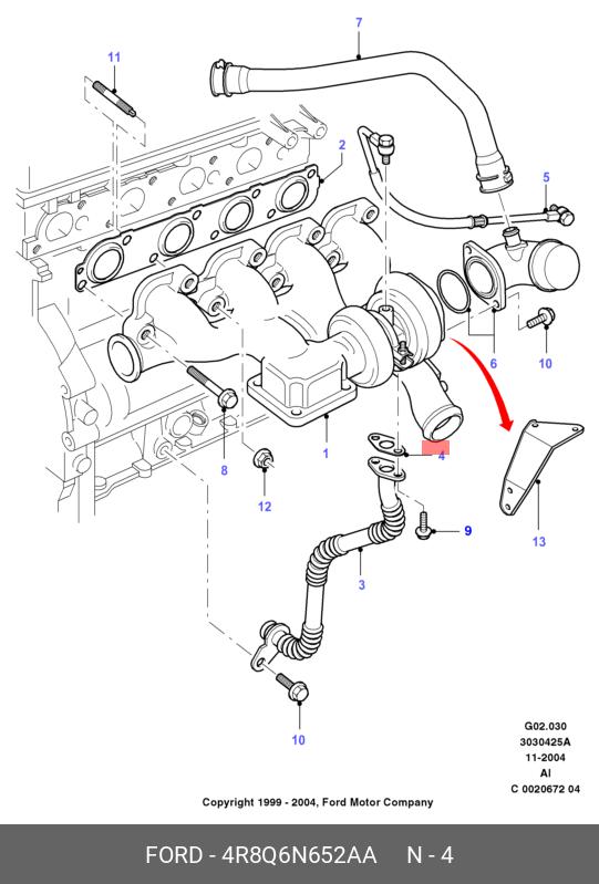 4R8Q6N652AA FORD Комплект прокладок турбокомпрессора mfz0129nr