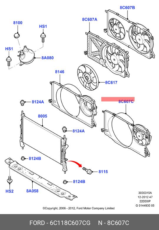 6C11-8C607-CG FORD Вентилятор охлаждения rcf0336cd