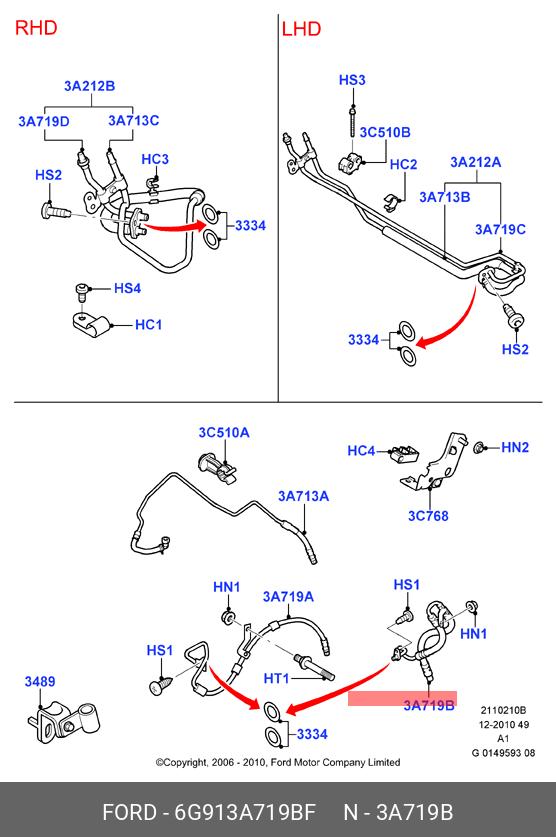 6G91-3A719-BF FORD Напорный шланг от насоса к рейке hph0452