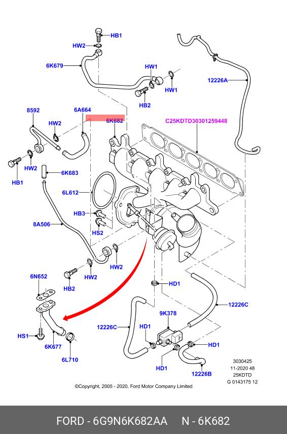 6G9N-6K682-AA FORD Турбокомпрессор оригинальный восстановленный