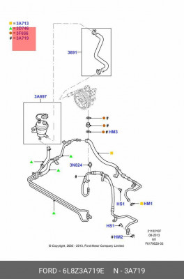 6L8Z-3A719-E FORD Напорный шланг от насоса к рейке hph0244