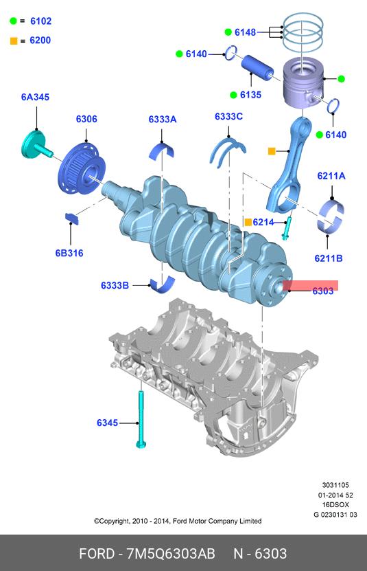 7M5Q-6303-AB FORD Вал коленчатый 4 CYL