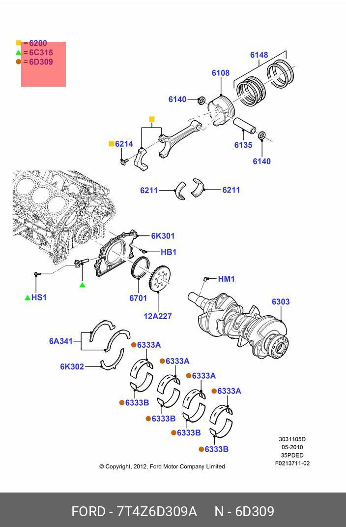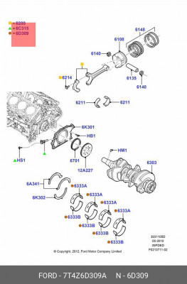7T4Z-6D309-A FORD Вкладыши коренные EMB0410 3.5 Ford/Mazda T35PDDE/T35RDTD/T37PDED