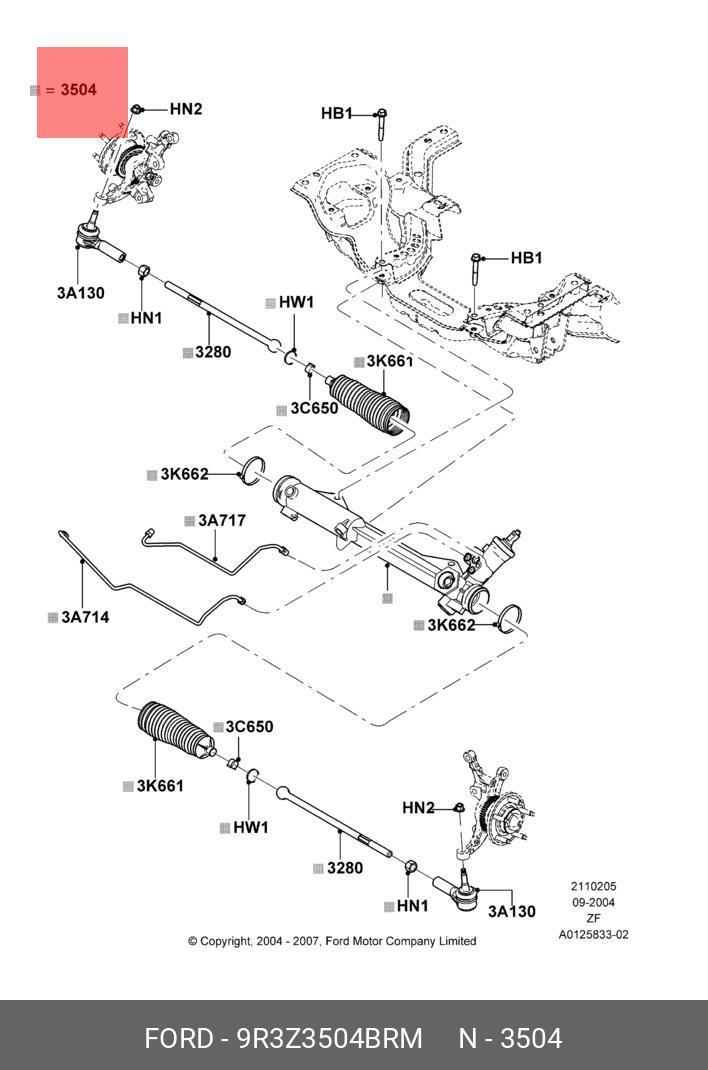 9R3Z-3504-BRM FORD Рулевая рейка с тягами гидравлическая r25901nw