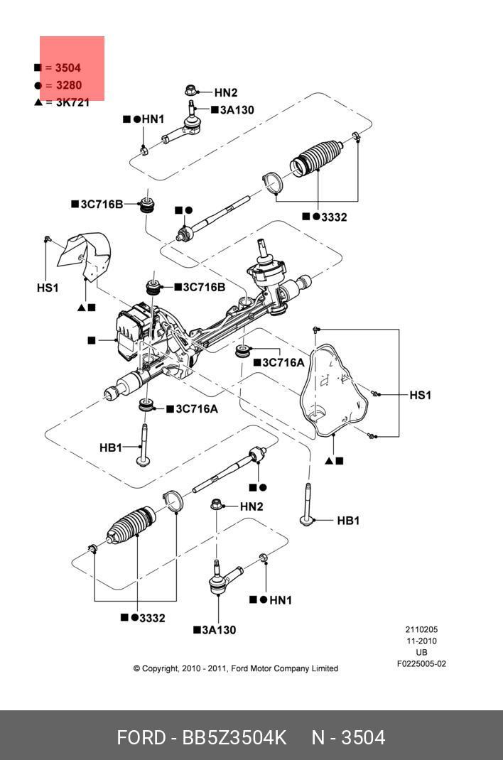 BB5Z-3504-K FORD Рулевая рейка с тягами электрическая e40431nw