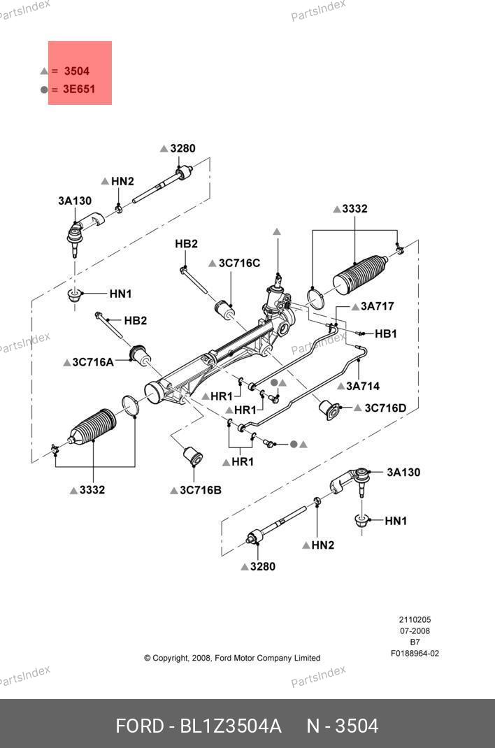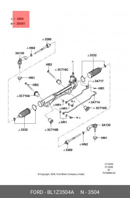 BL1Z-3504-A FORD Рулевая рейка с тягами гидравлическая r29001nw