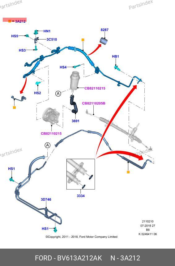 BV61-3A212-AK FORD Комплект шлангов гур hhk1014