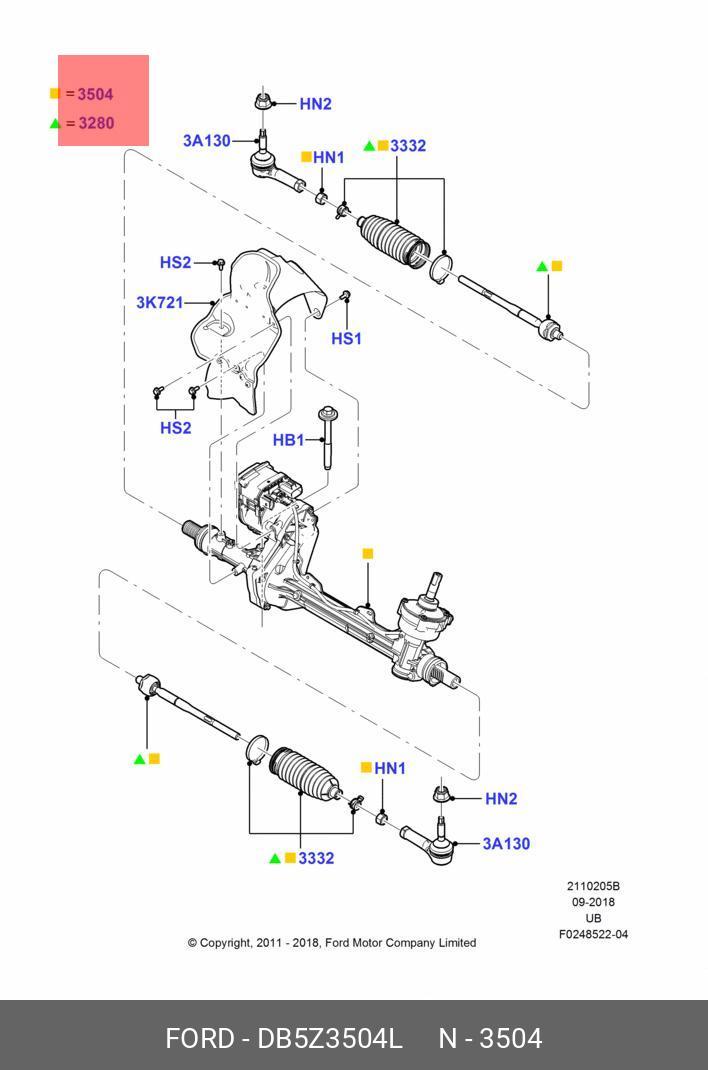 DB5Z-3504-L FORD Рулевая рейка с тягами электрическая e43621nw