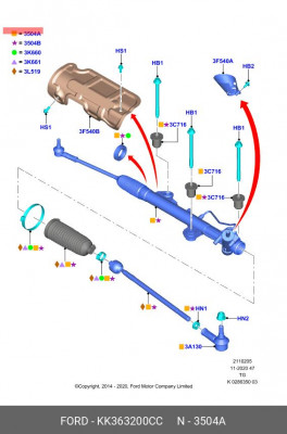 KK36-3200-CC FORD Рулевая рейка с тягами гидравлическая r29381nw