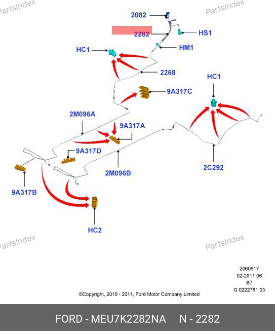 MEU7K-2282-NA FORD Шланг тормозной hbf0090