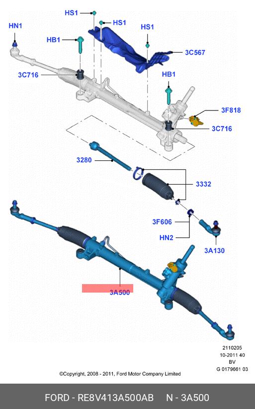 RE8V41-3A500-AB FORD Рулевая рейка с тягами гидравлическая r25941nw