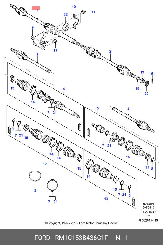RM1C15-3B436-C1F FORD Вал приводной в сборе 419n11099z