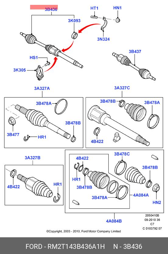 RM2T14-3B436-A1H FORD Вал приводной в сборе 419n11273z