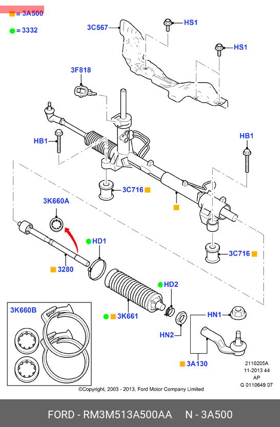 RM3M51-3A500-AA FORD Рулевая рейка с тягами гидравлическая r26271nw