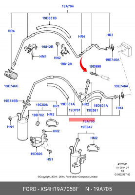 XS4H19A705BF FORD Трубка кондиционера hac0198