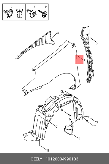 10120004990103 GEELY Крыло переднее правое Geely MK, MK Cross
