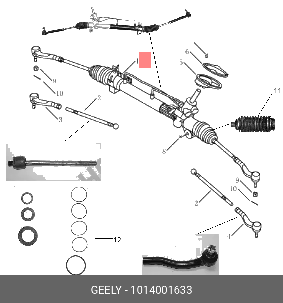 1014001633 GEELY Рулевая рейка с тягами гидравлическая r26051nw
