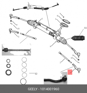 1014001960 GEELY Наконечник тяги рулевой левый Geely MK, MK Cross, шт