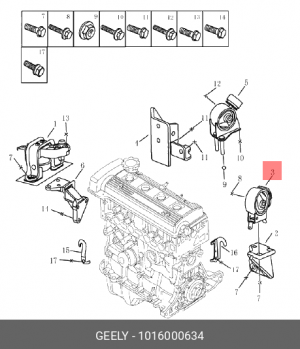 1016000634 GEELY Подушка двигателя левая Geely MK, MK Cross
