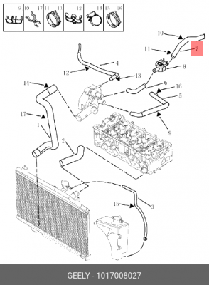 1017008027 GEELY Патрубок отопителя 1 Geely MK, MK Cross, VISION