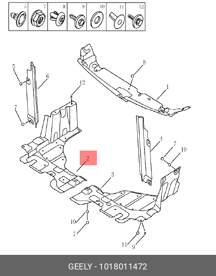 1018011472 GEELY Пыльник двигателя левый Geely MK, MK Cross, шт
